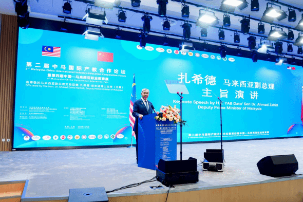 扎希德副总理于致辞中对自第一届中马国际产教合作论坛举办以来开展的务实合作予以充分肯定,并表示为支持该项目,马来西亚政府将借助国家职业教育委员会,强化政策扶持与资金投入,推动中马产教合作项目向制度化、品牌化以及高质量发展方向推进,持续增强两国在区域职业教育领域的影响力与示范效应。